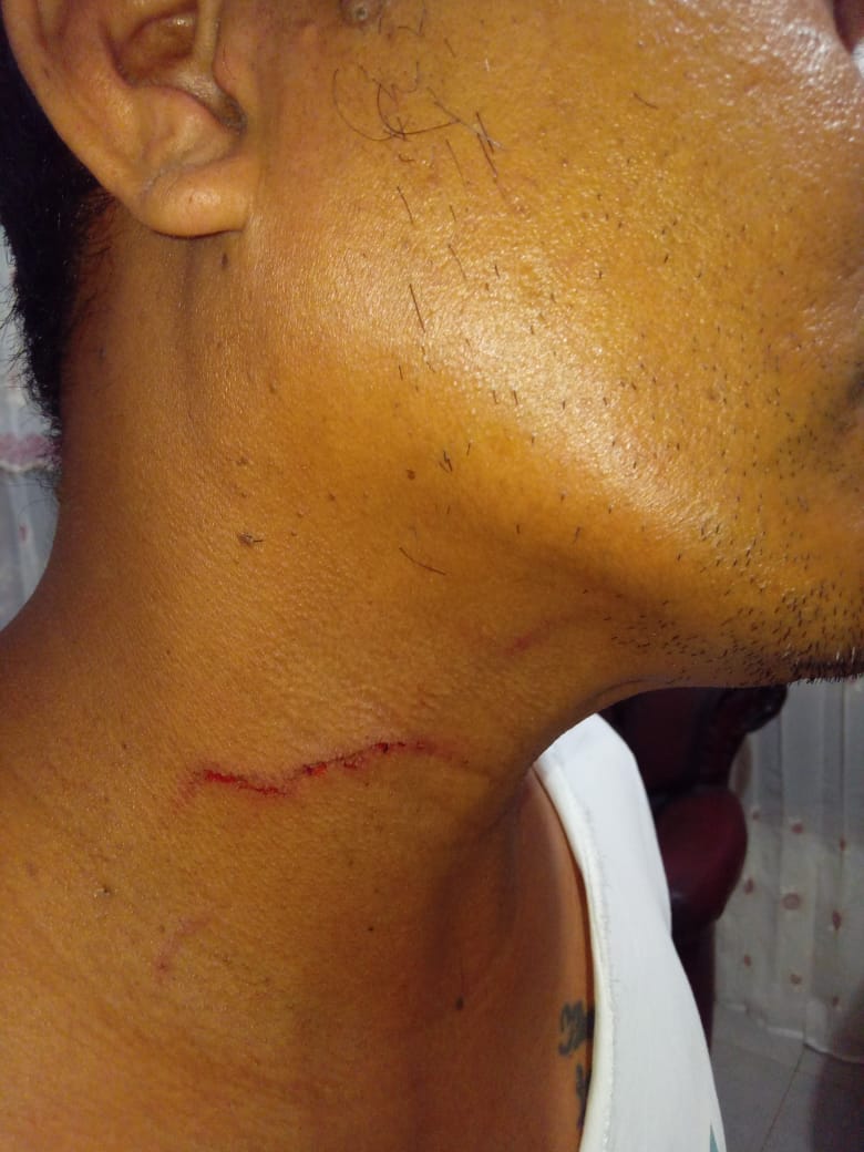 “Mereka berdua datang memaki-maki saya tanpa saya tahu alasannya. Setelah itu RT dan anaknya langsung mencekik dan memukul saya,” kata korban.