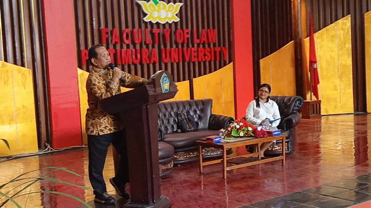 Kuliah umum yang berlangsung di Aula FH Unpatti, dibuka oleh Dekan Dr. Hendrik Salmon, S.H., M.H dan dihadiri oleh civitas akademika dan mahasiswa FH. Tak lupa juga hadir Rektor Unpatti dua periode, Prof. Dr. M. J. Saptenno, SH., M.Hum, Senin (13/05/2024).
