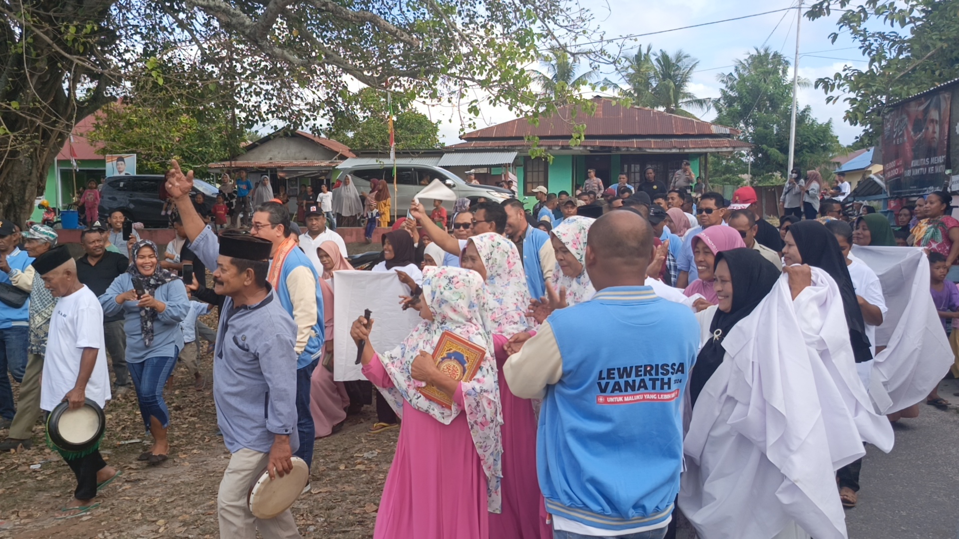 Raut kebahagian terlihat dari wajah HL-AV setelah melihat antusias masyarakat menyambut dengan senyuman hangat, disertai iringan Hadrat dari generasi penerus negeri Waeperang, Kecamatan Lilialy, minggu (15/09/2024).