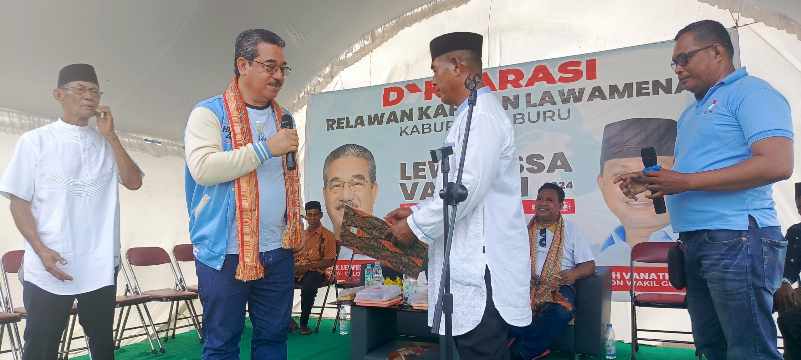 “Pasangan HL-AV adalah contoh bagi kita orang Maluku, pasangan inilah yang akan diperjuangkan bersama. Kepada seluruh relawan, kita turun ke desa, dusun, kita sisir gunung, kita sisir pantai untuk meyakinkan rakyat bahwa kedua putra terbaik bagi Bupolo dan Maluku kedepan. Mari kita nikmati Pilkada ini dengan damai dan santun, kalau ada fitnah, caci-maki kita jogetin saja kata Presiden terpilih Prabowo Subianto, ”tandasnya.