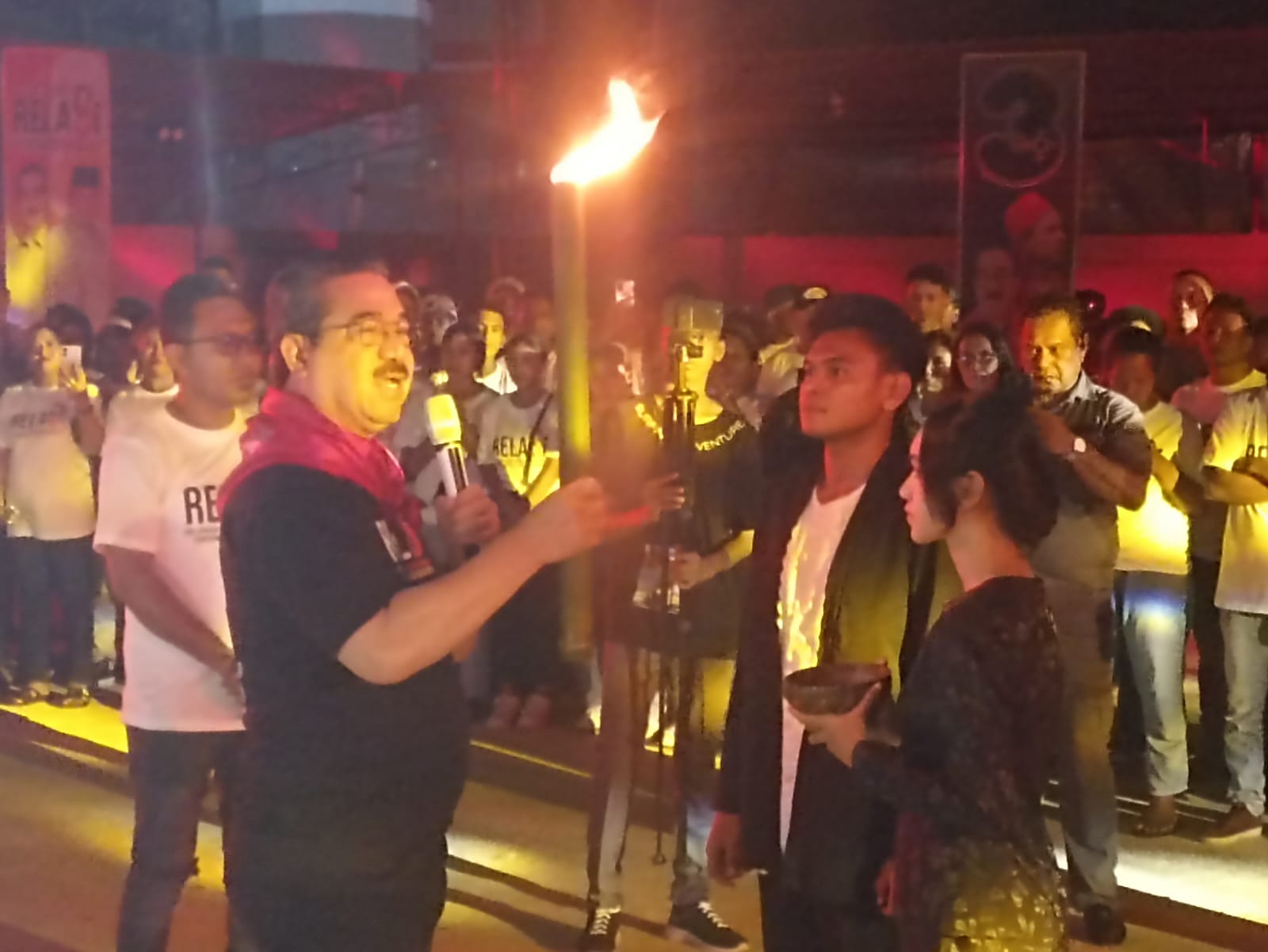 Suasana semakin sakral setelah Hendrik Lewerissa yang didampingi Istri, Maya Baby Rampen diiringi tarian Cakalele memasuki stadion mini, berlokasi di bawah Jembatan Merah Putih. Semangat membara setelah Kapitan dari Lease itu menerima Obor dan Tampa Garam yang melambangkan tempat berkumpul dalam semangat perjuangan.