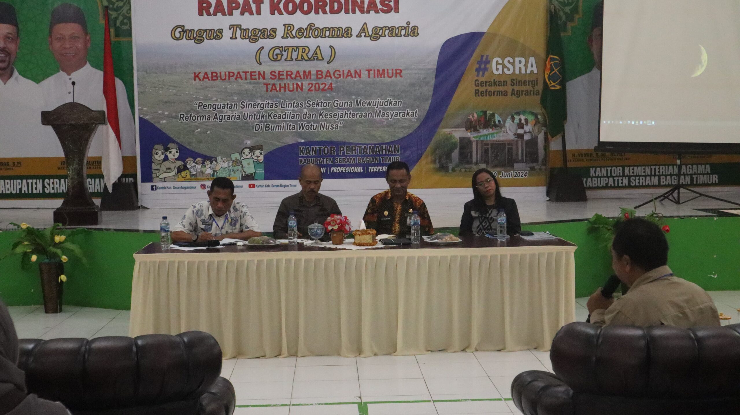 Rakor yang berlangsung di aula kantor Kemenag, Kamis (20/06/2024), dibuka oleh Wakil Bupati, Idris Rumalutur, bersama Kepala BPN SBT, Juliana Jolanda Salhuteru.